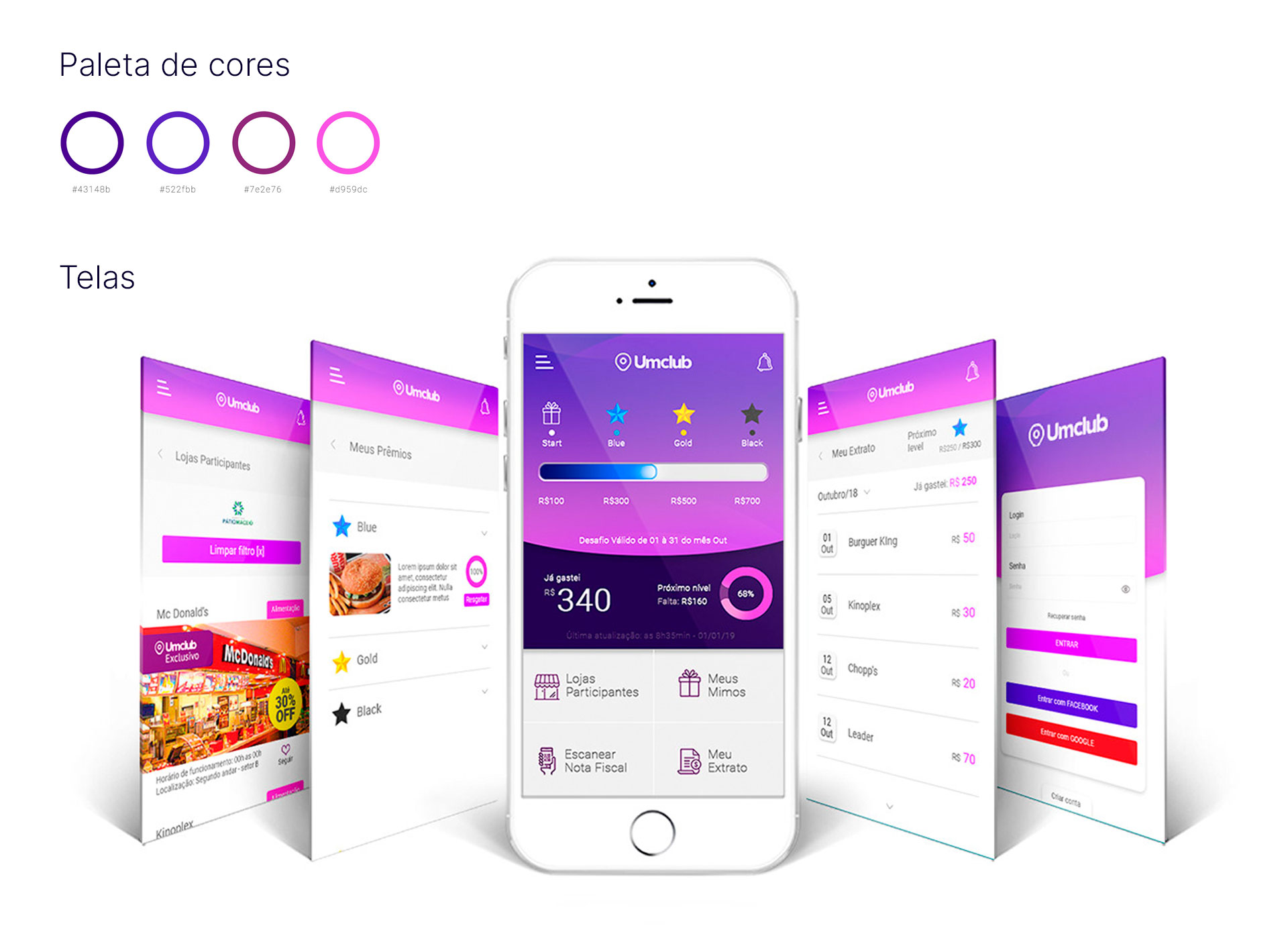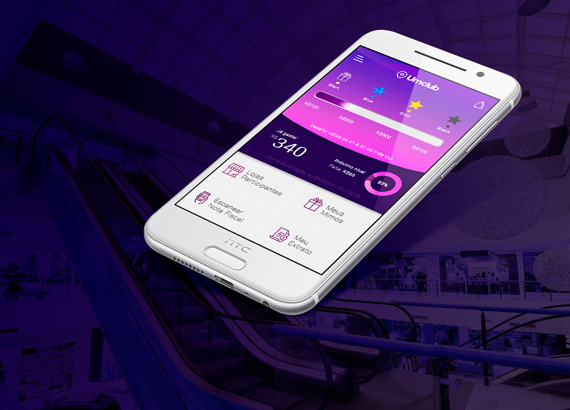 O aplicativo Umclub foi desenvolvido para conectar clientes segmentados aos varejistas de shopping através de um programa de fidelização. O app coletava dados valiosos como localização via GPS, histórico de compras e comportamentos de navegação, criando uma experiência personalizada tanto para os usuários quanto para os varejistas.
